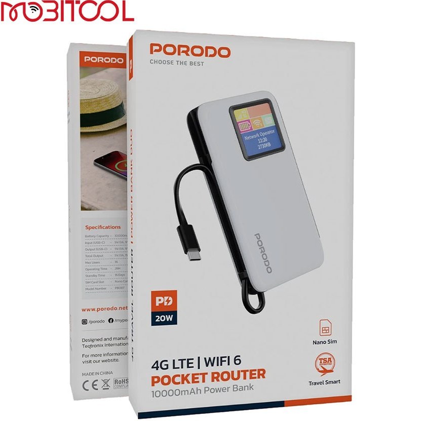 پاوربانک پرودو مدل PDPBFCH087 ظرفیت ۱۰ هزار با مودم جیبی ۴G LTE